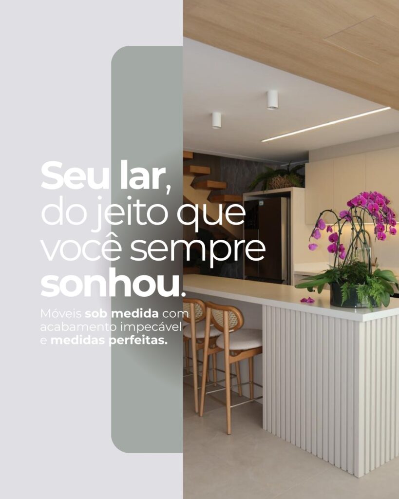 Móveis prontos são feitos para agradar a “média”. Móveis sob medida são feitos para agradar você. Ao optar pelo sob medida, você deixa de tentar encaixar a sua vida dentro de um móvel padrão e passa a ter um móvel desenhado para a sua rotina.